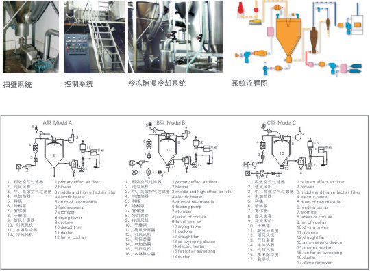 基本原理:中藥浸膏高速離心噴霧裝置是離心式噴霧干燥技術在特定物料干燥中的應用 ,也是利用高速離心式霧化器使物料分散成霧狀,與熱空氣所充分接觸 ,完成瞬間干燥,形成粉狀成品的干燥裝置。